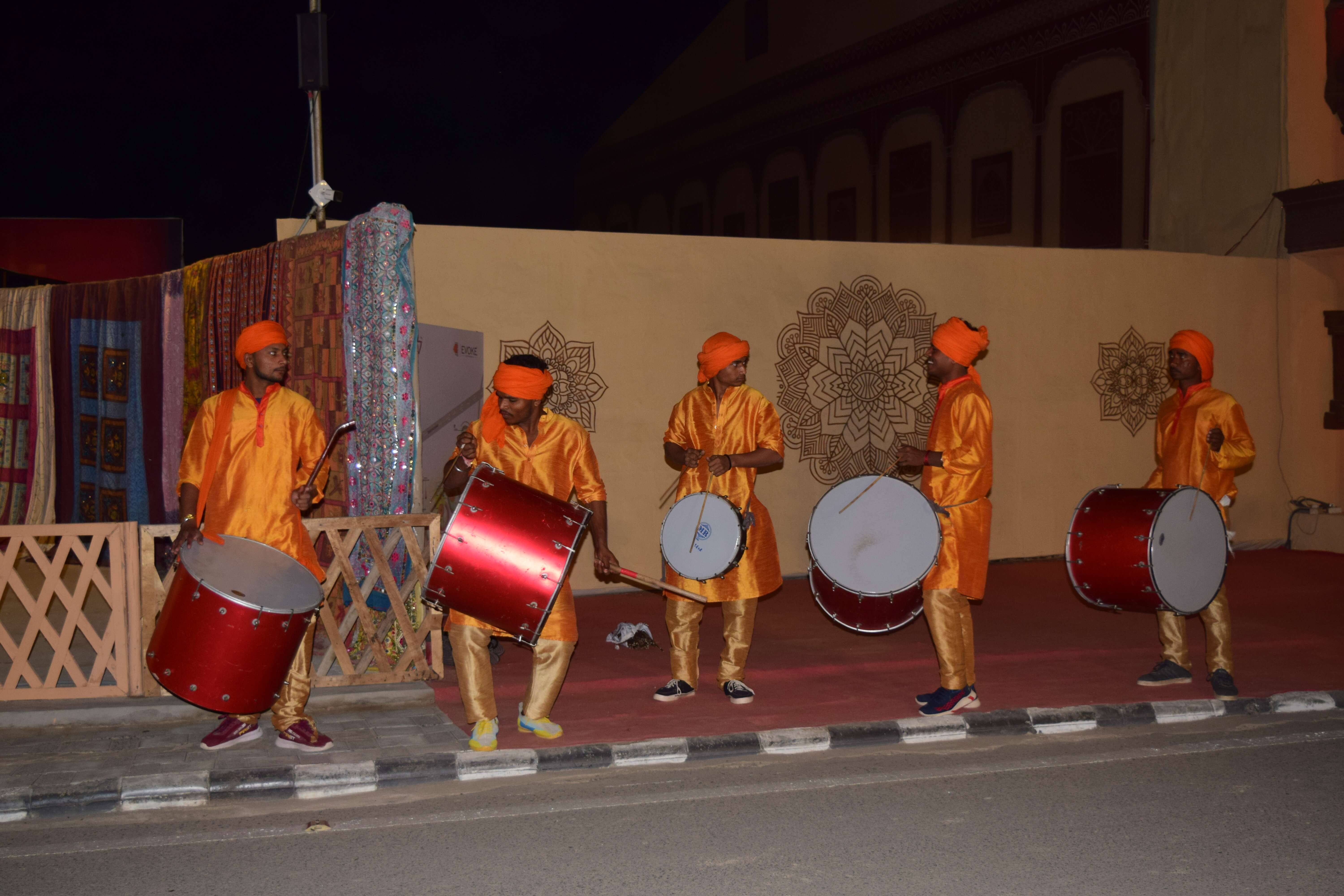 After sunset, we were taken back to the Rann Utsav tent city where we had Dhol (big drum) and wonderful lighting of the main area welcoming folks: