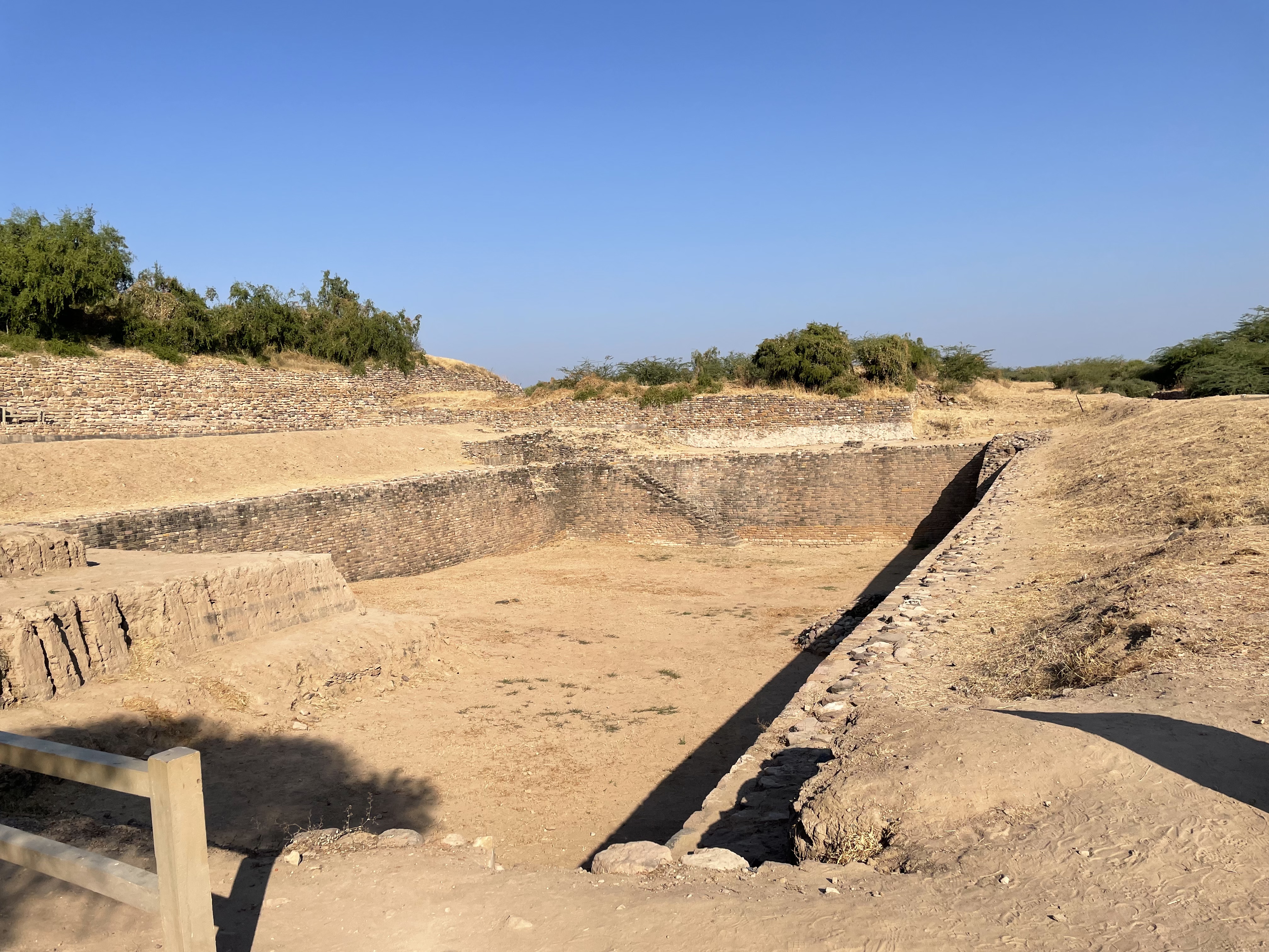 The Harappan city, which dates back to 3000 BCE has amazing facilities like water tanks, closed drainage systems, bead workshop, granary. It’s amazing how people in that era, built all this without any modern machines! Our guide also told us that while the excavation was in progress, they also found a foundry nearby where all the stone structures were manufactured, and used not only here but also exported. It is said that the water body nearby which is a salty lake now, was at some point of time part of the Arabian sea.